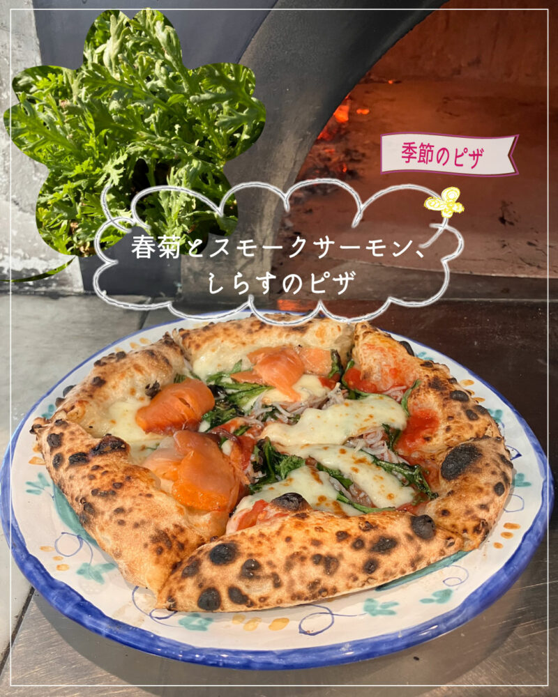 【季節のピッツァ】3月3日より、春菊とスモークサーモン&しらすのピッツァの販売を開始いたします。